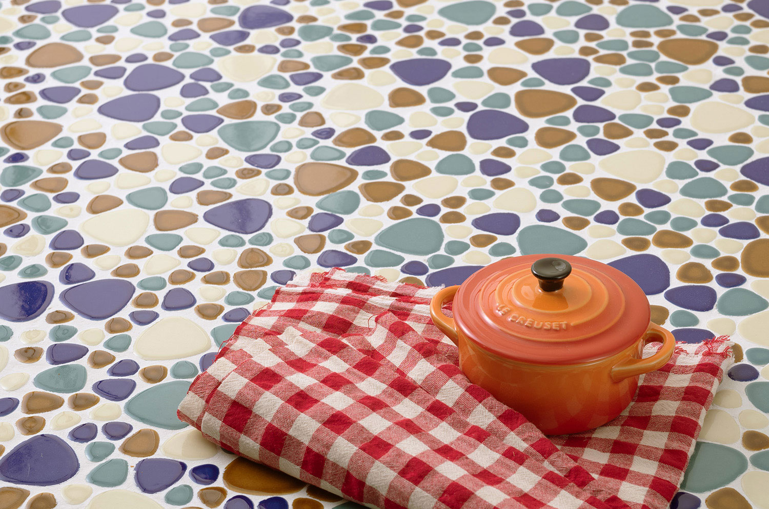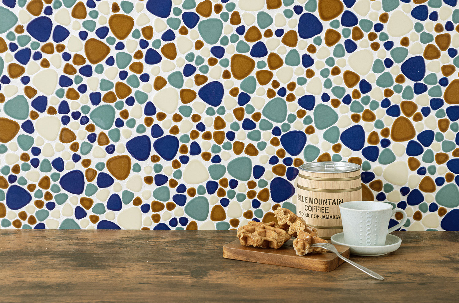 レトロな雰囲気と現代的なデザインを融合させて上品で可愛らしい玉石モザイクタイル。滑らかな丸みが、空間に温かみを添えてます。 ■注意事項■ 生産ロットにより色が異なる場合があります。
