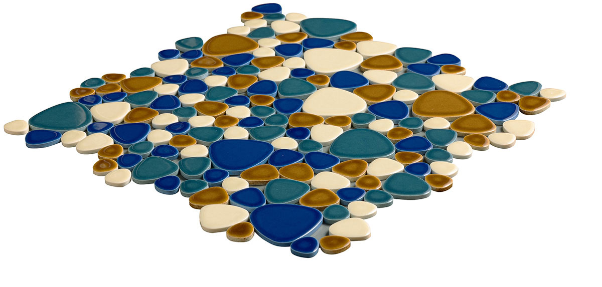 - モザイクタイル ユレルシズク(玉石) ミックスサイズ 色:海賊船