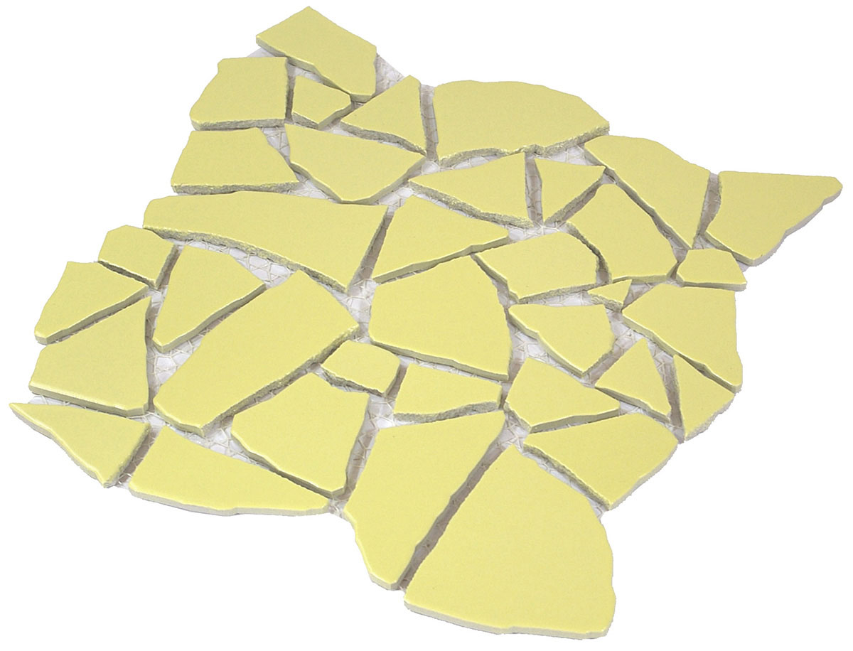 曲面・曲線に張ることができるタイルです。生産工程で人間が割っていますので同じ形状はありません。鋭角部分の縁も丸く加工しているので安全です。 ■注意事項■ ●紙張り加工は目地巾を5〜10mm程度開けて加工してあります。 ●生産ロットにより色が異なります。 ●バラ石出荷も可能です。