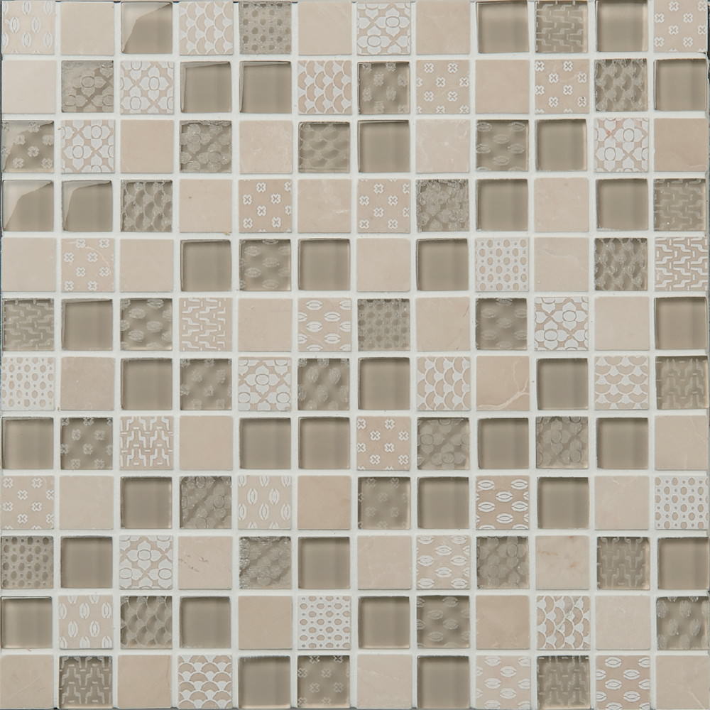 大理石とガラスを合わせ、エッジング加工で奥行き感を表したミックスモザイク。