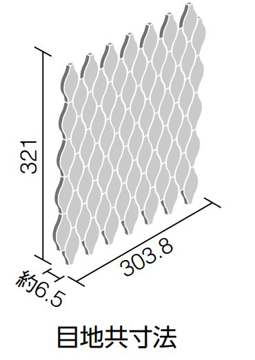 タイル実寸:約63×32mm 厚み約6.5mm 目地共シート寸法 : 303.8×321mm 1シート : 縦5枚×横14枚=20枚 ※多少の寸法誤差があります |