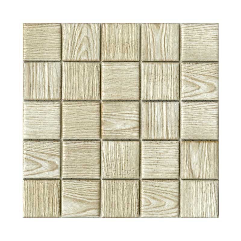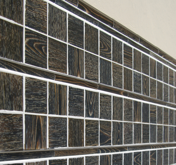 天然木の豊かな風合いをモザイクタイルで再現します。