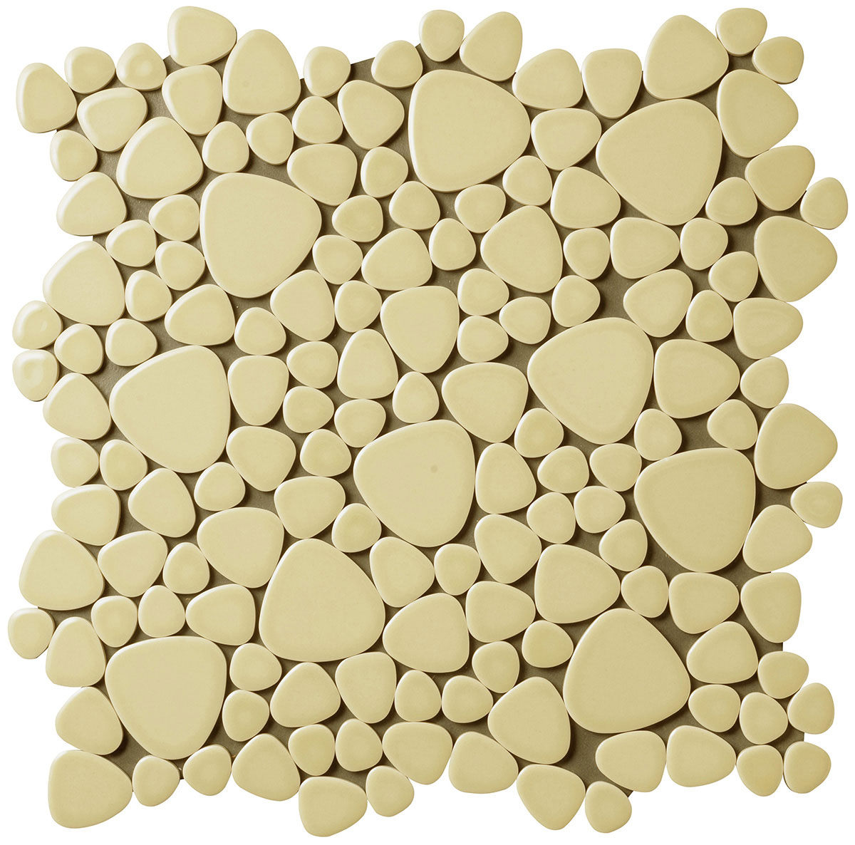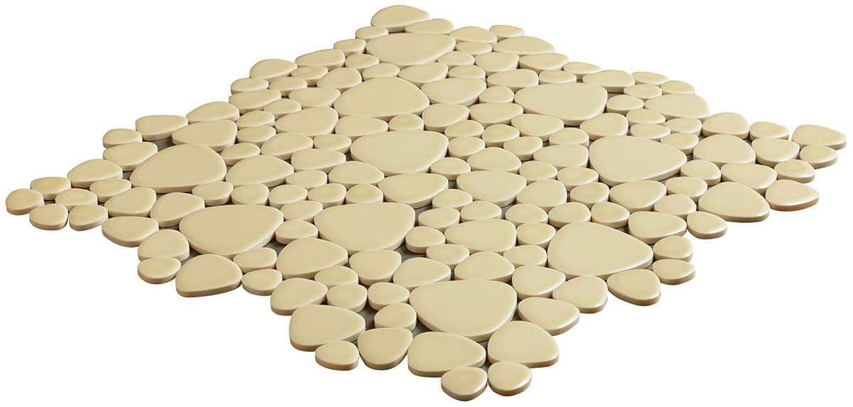 - モザイクタイル ユレルシズク(玉石) ミックスサイズ 色:きなりいろ