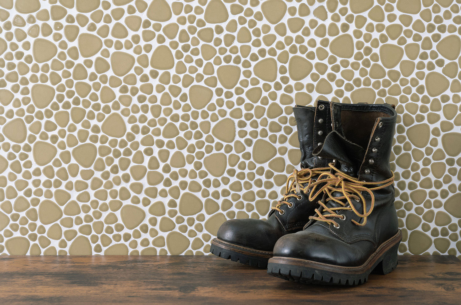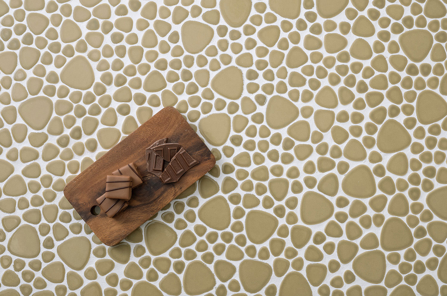 レトロな雰囲気と現代的なデザインを融合させて上品で可愛らしい玉石モザイクタイル。滑らかな丸みが、空間に温かみを添えてます。 ■注意事項■ 生産ロットにより色が異なる場合があります。