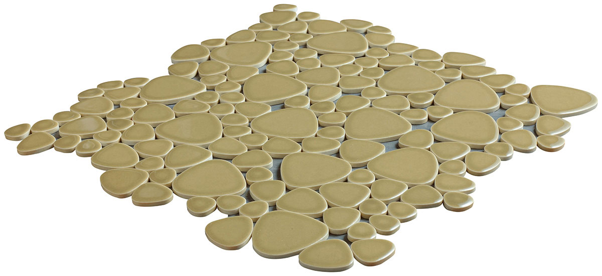 - モザイクタイル ユレルシズク(玉石) ミックスサイズ 色:おうどいろ