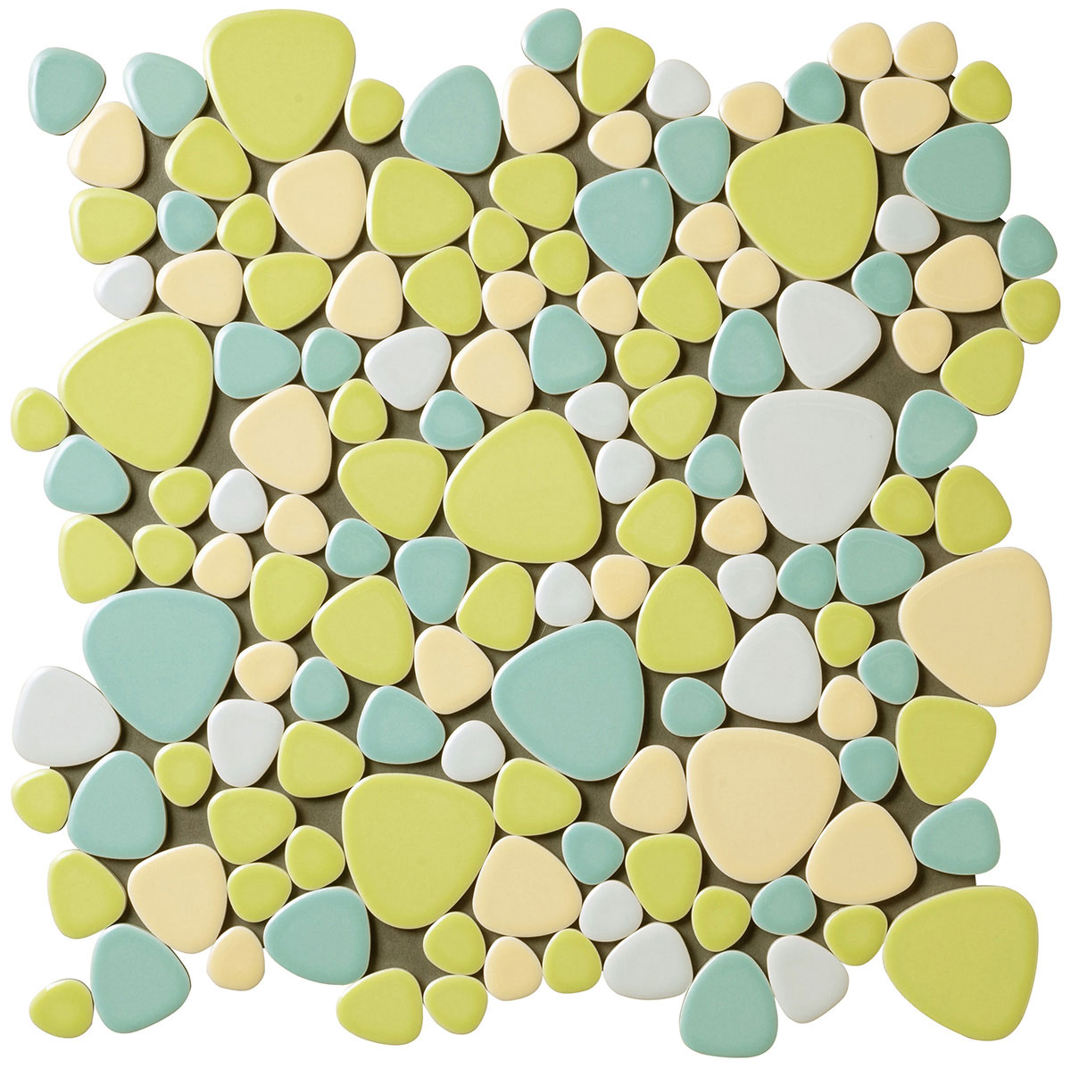 レトロな雰囲気と現代的なデザインを融合させて上品で可愛らしい玉石モザイクタイル。滑らかな丸みが、空間に温かみを添えてます。 ■注意事項■ 生産ロットにより色が異なる場合があります。