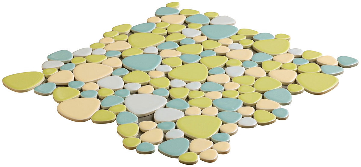 - モザイクタイル ユレルシズク(玉石) ミックスサイズ 色:メロンパン