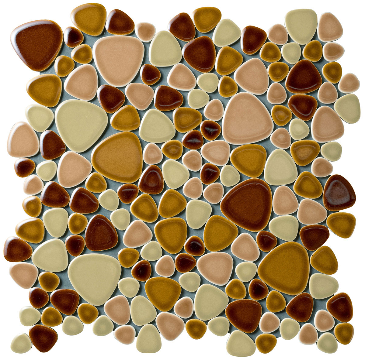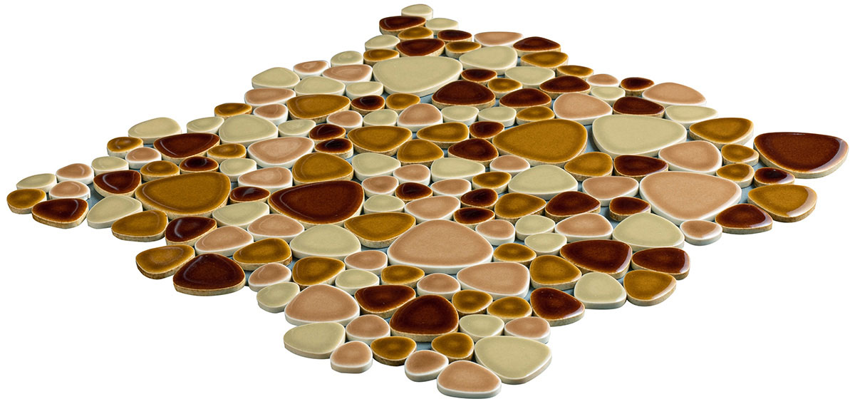 - モザイクタイル ユレルシズク(玉石) ミックスサイズ 色:かぷちーの