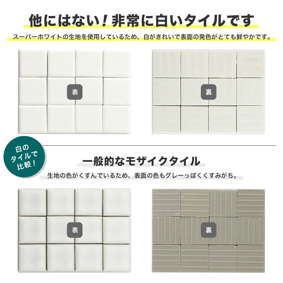 鮮やかな発色が魅力のモザイクタイル。スーパーホワイトの生地を使用しているため、明るくクリアな色合いをお楽しみ頂けます。 ■注意事項■ 生産ロットにより色が異なる場合があります。