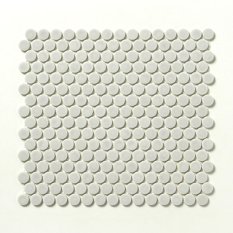 直径19mmのモザイクタイルは、1セントコイン(ペニー)と同じ大きさから、ペニーラウンドと呼ばれています。アメリカでは40年以上前からバスルームやキッチンバックなどに使われてきた定番とも呼べるペニーラウンド。ここ数年アメリカで人気が再燃しています。今人気の透明感のある淡い色合いをセレクトしました。西海岸の開放的なバスルームやマンハッタンのアパートメントのような、アメリカンなレジデンシャルテイストをご堪能ください。 ■注意事項■ ●焼き物特有の色幅のある商品です。 ●床に使用する場合は状況によっては滑り易くなりますのでご注意ください。 ●滑りに注意が必要な場所に使用する場合は、滑り止め加工等をご検討ください。
