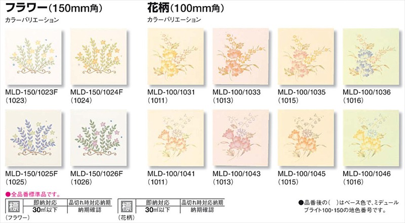 タイルライフのトップブランドタイル内装タイル > リクシル(INAX) 内装タイル ミデュールデザイン100 花柄 100mm角平(柄) MLD-100/1031 18096LIX
