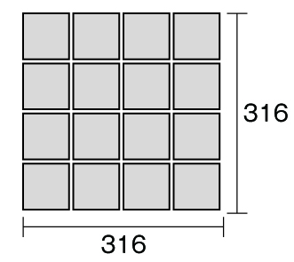 裏ネット貼り 目地共:316×316mm(4枚×4枚) 4mm目地 タイルサイズ:75mm角 |