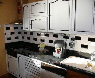 市松模様にデザインされたスタイリッシュなキッチン