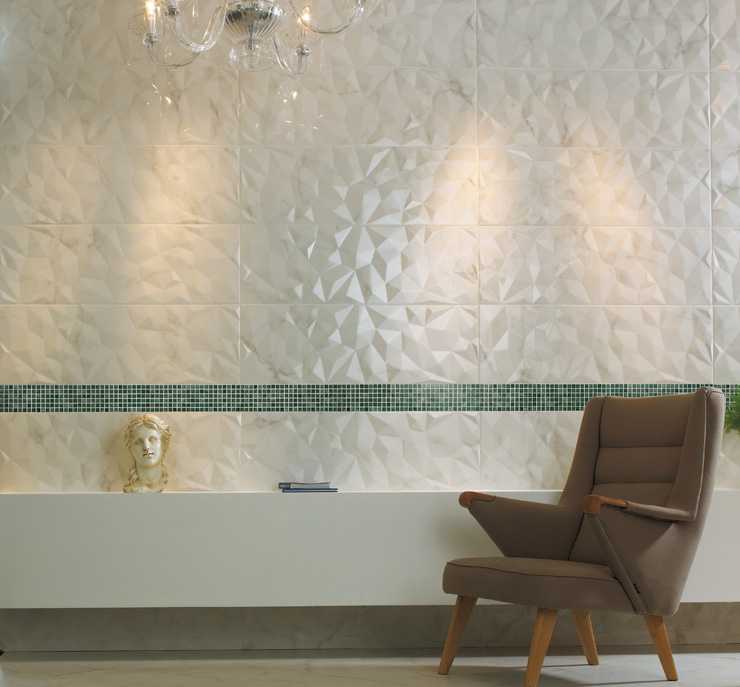 大理石柄の大形内装壁タイルで、レリーフもラインナップしました。