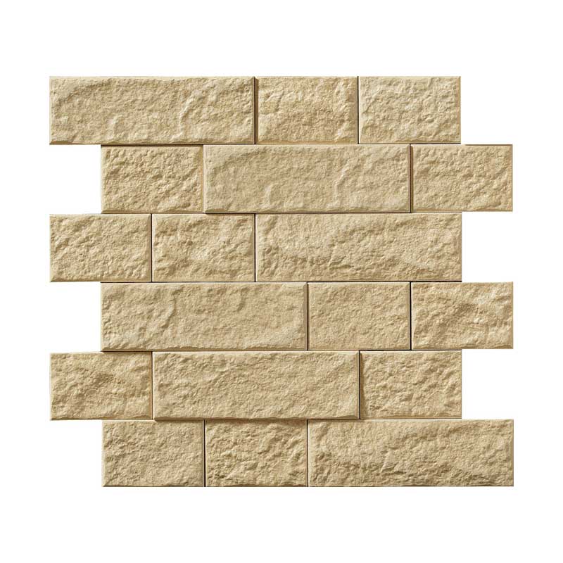 ●入隅は下の入隅納まり例を参照し、異形状ボーダー片面小端施釉(短辺)ネット張りと異形状ボーダーネット張りを使用して納めてください。切物は異形状ボーダーネット張りで行ってください。ただし、意匠がついているため完全にフラットになるわけではありません。