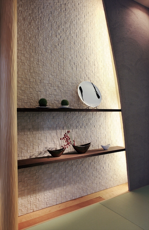 割り石のような凹凸のデザインが美しい陰影を作ります。店舗・住宅などのアクセントにお薦めです。