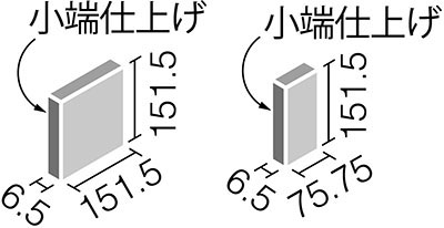 時を経て風化したような表情と落ち着いたカラーバリエーションが特徴です。 商品の留意点 ●エコカラットの共通注意事項(P.28)をご覧ください。 ●馬張り専用品です。通し目地で施工すると目地の交点に大きな隙間ができます。 ●自然な土の風合いを出すために部分的に柄模様を施しています。特に、色番CRC1は、白色のベース層の凸部に茶色を重ねた意匠となります。 ●素材の風合いを出すために大きな色幅があります。 ●この商品は目地幅1.0mm程度あける仕様となっていますが、外周がラウンドしており部分的に数ミリ程度目地があき、目地部から接着剤などが見えます。 ●小端には、加飾を施していませんので、表面とは色合いが異なります。現物サンプルにてご確認ください。 ●この商品は複数のレリーフ面状をミックスしています。 ●出隅セット、片面小端仕上げセットの小端面は、タッチアップ仕上げとなっています。 ●見切り材を使用しないで壁の途中から施工する際、左右端部には片面小端仕上げセットをご使用ください。 施工上のご注意 ●接着剤は「スーパーエコぬーるG」をご使用ください。 ●接着剤は、5mmくし目コテ平押えで施工してください。 ●色番CRC1は白を基調としているため、汚れには十分注意して施工してください。