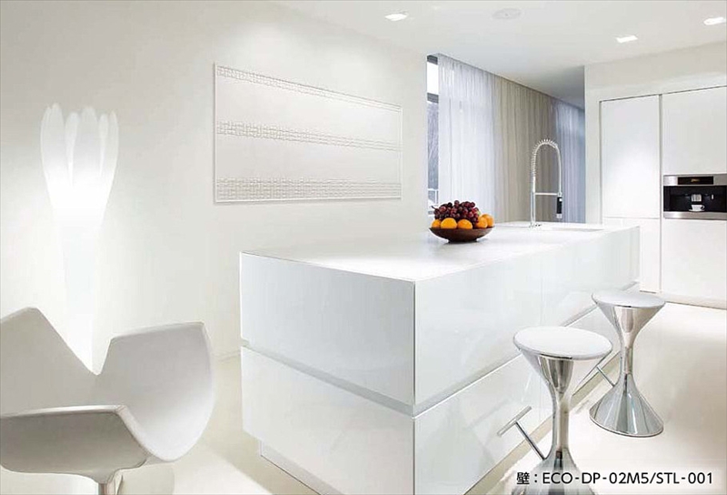 幾何学的なレリーフをライン状に組み合わせたすっきりとしたデザインです。