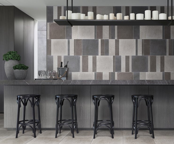 多形状と色の組み合わせでデザインが広がります。 ソフトで穏やかな質感のセメント調が使いやすいタイルです。 商品の留意点 ●多様な柄模様がありますが、ランダムに使用していただくことを想定しています。 ●この商品は意匠上、部分的にボカシ模様を施しています。 ●片面小端仕上げの小端面は、タッチアップ仕上げとなっています。 施工上のご注意 ●施工前に仮並べをして、色合い・柄模様等の確認をしてください。