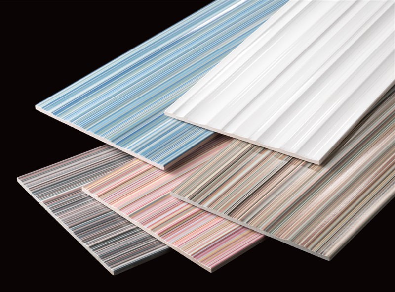 4つのイメージからデザインしたストライプが斬新なデザインタイルです。 ベースタイルと組み合わせたアクセント使いもお薦めです。 商品の留意点 ●レリーフ・柄には方向性があります。裏面の色番記号を下にそろえてください。 ●1ケースには12種類の柄がランダムに梱包されています。必ず1梱包に12種類の柄全てが入っているわけではありません。また、特定の柄を指定しての発注はできませんので、ご了承ください。 ●役物を用意していません。必要な場合は装飾見切り材(壁用)(カタログ)をご使用ください。 施工上のご注意 ●レリーフ・柄には方向性がありますので、裏面の色番記号を下にそろえて施工してください。