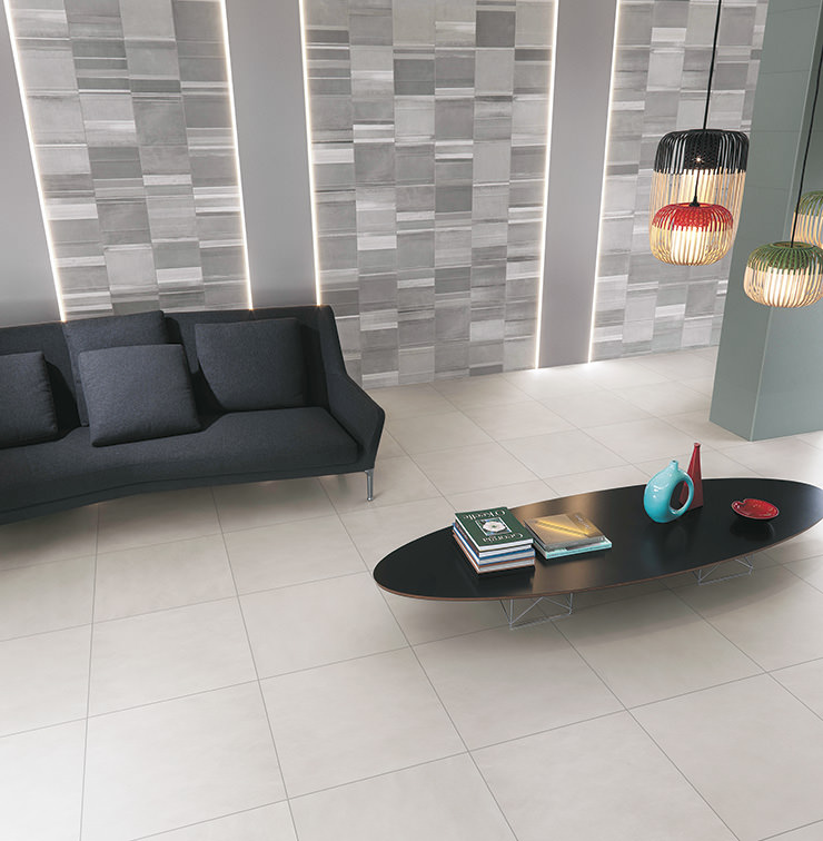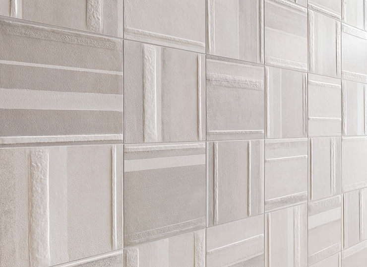 縦、横、市松と様々な張り方で意匠変化を楽しめるタイルです。照明効果による陰影感の演出も可能です。