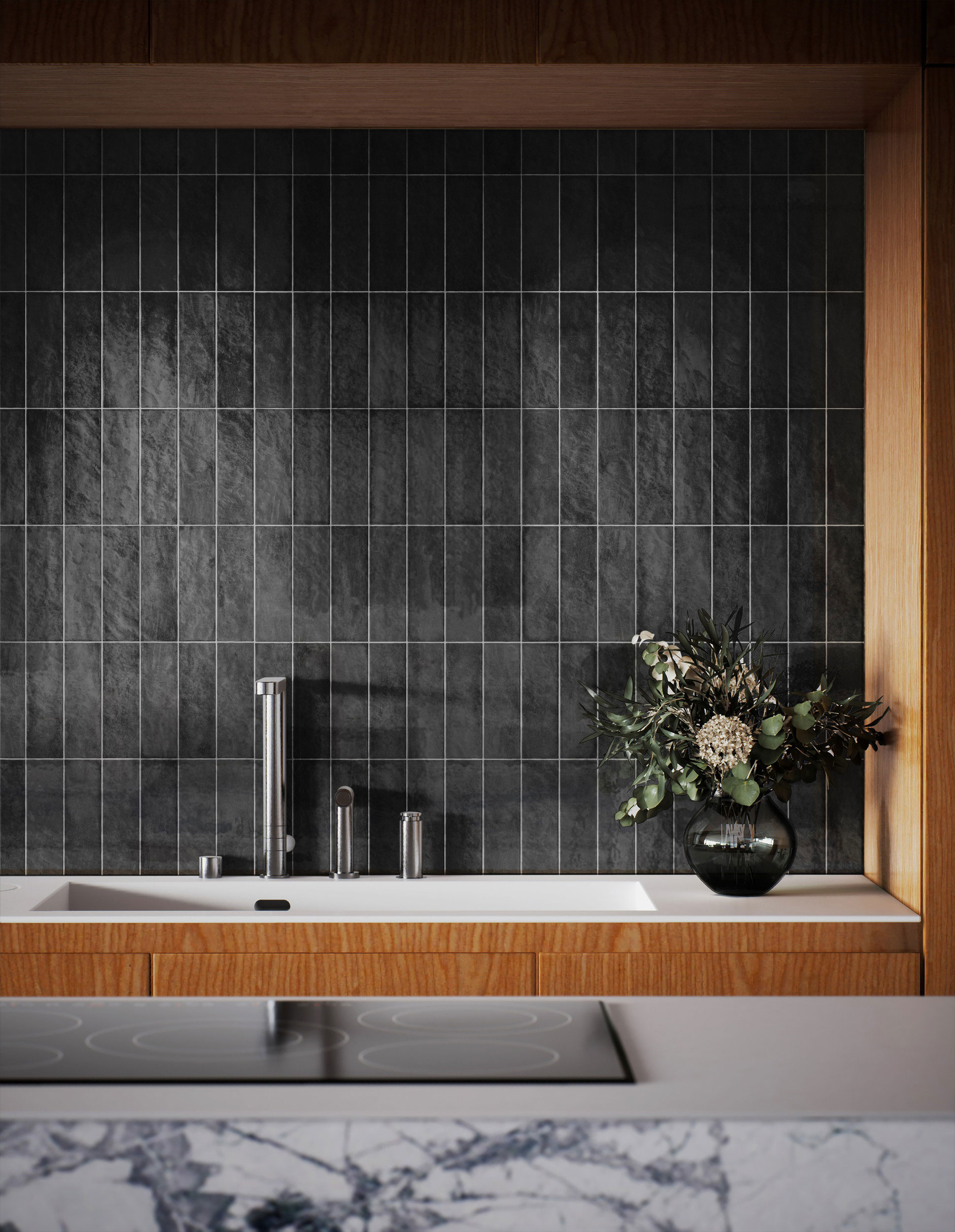 - 壁タイル ルナG 75x230角 色:ブラック