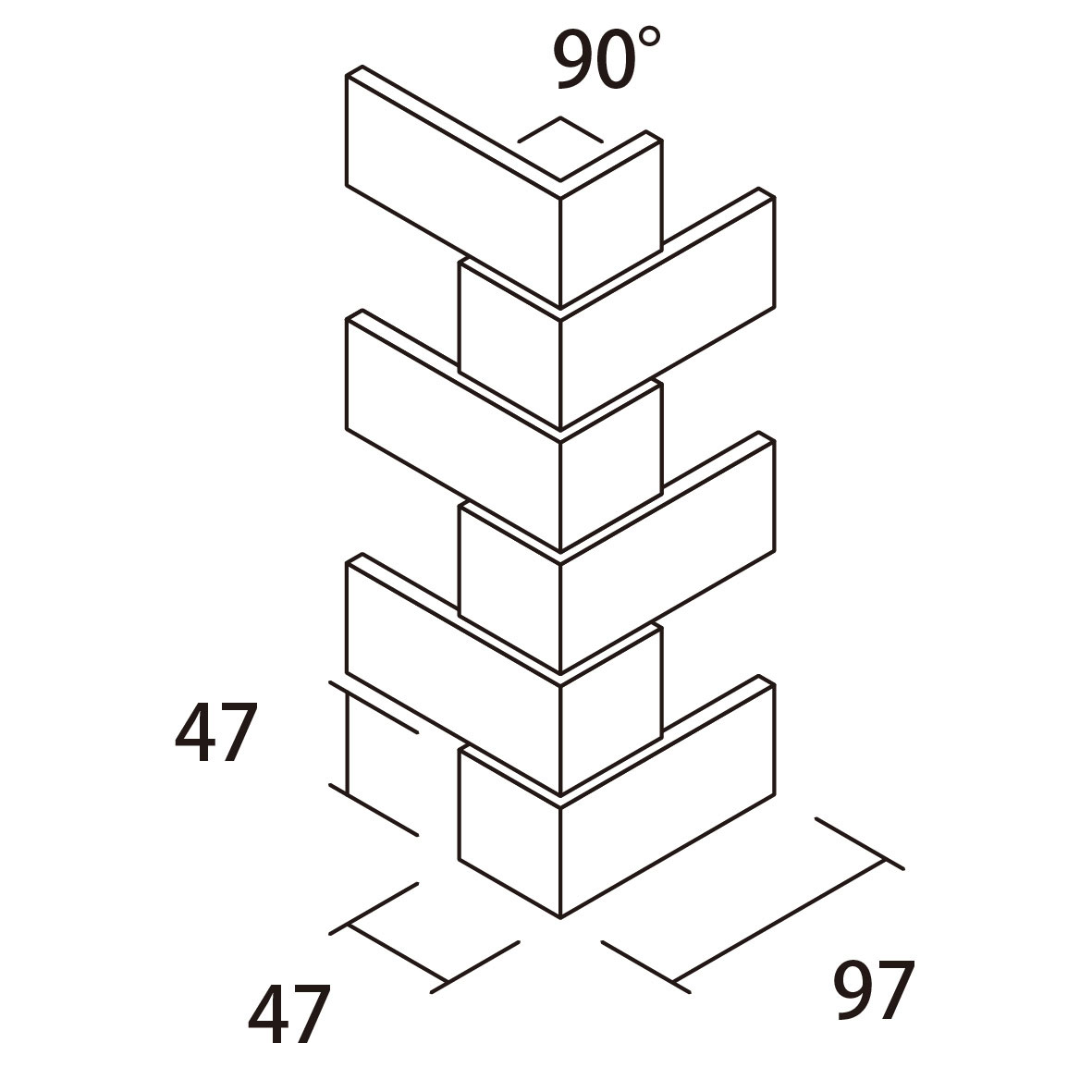 47二丁90°曲り紙張りレンガ張り |