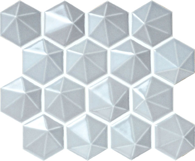 - 壁タイル ディメンションズ 六角形内装タイル 62X70mm 凸形状 色:グレー