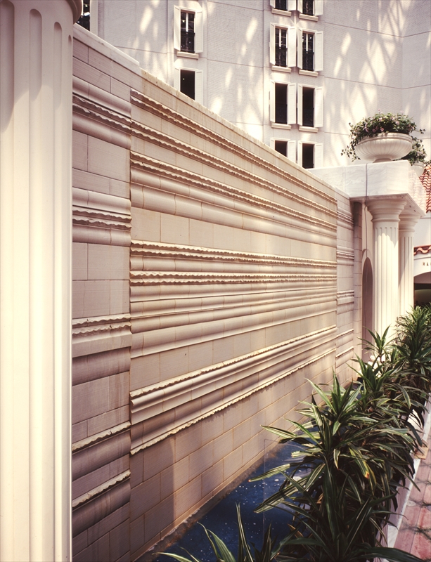ダイナミックな流れを生む陶板。 自然な色幅と強さを兼ね備え、時の経過を感じるテラコッタの魅力が美しい。