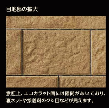 やわらかな風合いで空間をナチュラルに演出します。 パブリック空間にお薦めです。 <商品の留意点> ●エコカラットプラスの共通注意事項(カタログ)をご覧ください。 ●自然な石の風合いを出すために部分的に柄模様を施しています。特に、色番VIT1Nは、白色のベース層の凸部に茶色を重ねた意匠となります。 ●この商品は縦・横とも目地幅を1.0mm程度あける仕様になっており、裏ネットや接着剤のクシ目などが見えます。 ●小端には、加飾を施していませんので、表面とは色合いが異なります。現物サンプルにてご確認ください。 ●この商品は複数のレリーフ面状をミックスしています。 ●製造上、異形状ボーダーネット張りと90°曲ネット張りの見えがかりが違います。 ●90°曲の内寸は、厚さにかかわらず(29.35+67.25)×49.5mmです。 ●入隅は左ページの入隅納まり例を参照し、異形状ボーダー片面小端施釉(短辺)ネット張りと異形状ボーダーネット張りを使用して納めてください。切物は異形状ボーダーネット張りで行ってください。ただし、意匠がついているため完全にフラットになるわけではありません。 ●「エコカラットGシリーズグラナスヴィスト」と「エコカラットプラスGシリーズグラナスヴィスト」では色合い・表情が異なります。現物サンプルにてご確認ください。 <施工上のご注意> ●接着剤は「スーパーエコぬーるG」をご使用ください。 ●目地を1mmあけて施工してください。 ●接着剤は、エコカラットプラスの長手方向に平行にクシ目を立てると、クシ目が目立ちにくくなります。 ●多様な柄模様や大きな色幅があるので、施工前に仮並べをして色合い・模様の確認をしてください。 ●目地部からはみ出した接着剤は、張付け後直ちに皮すき、へら等を用いて取り除いてください。 ●下地の種類、状態によっては、ずれることがあります。その場合は、下部から施工してください。また、必要に応じて、エコカラット1枚ごとの目地部にスペーサーを介して張り上げてください。