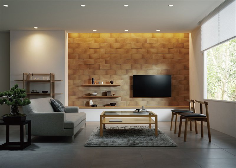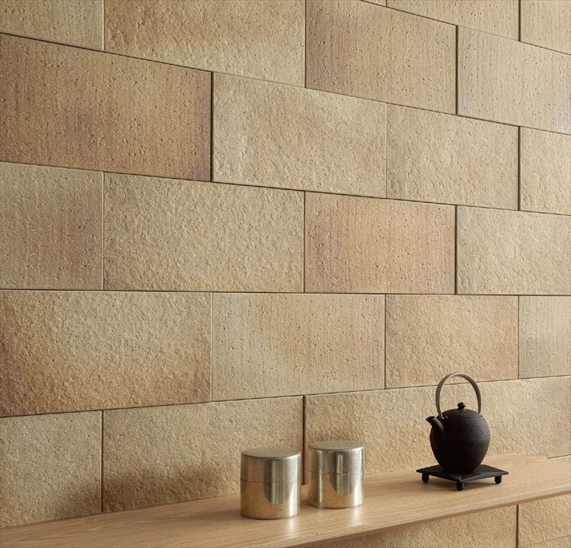 土を固めた陶板のレリーフ焼き物の豊かな表情を再現したクラフト感のあるデザインです。