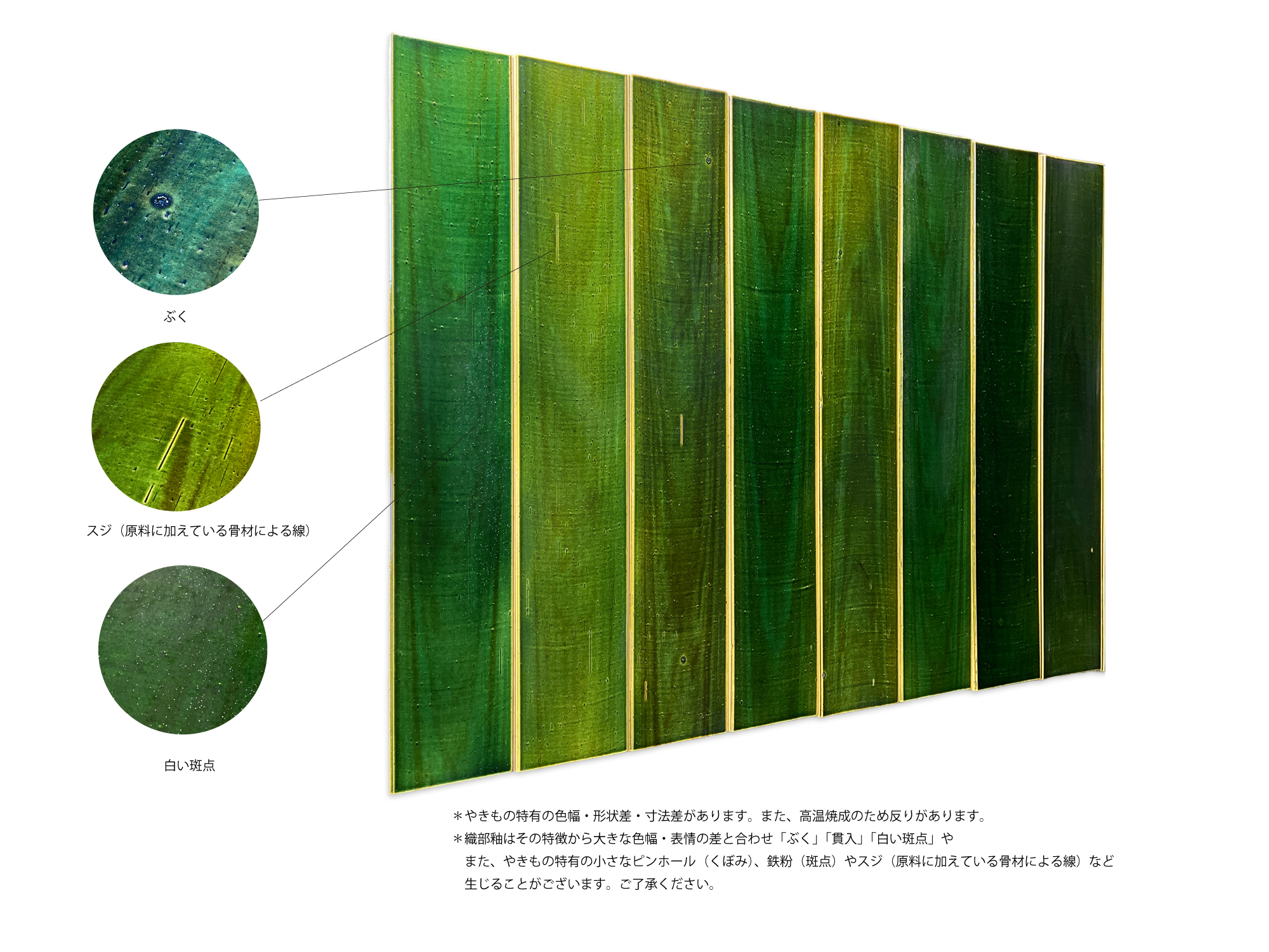 やきもののため、若干の色幅・寸法差・反りがあります。 |