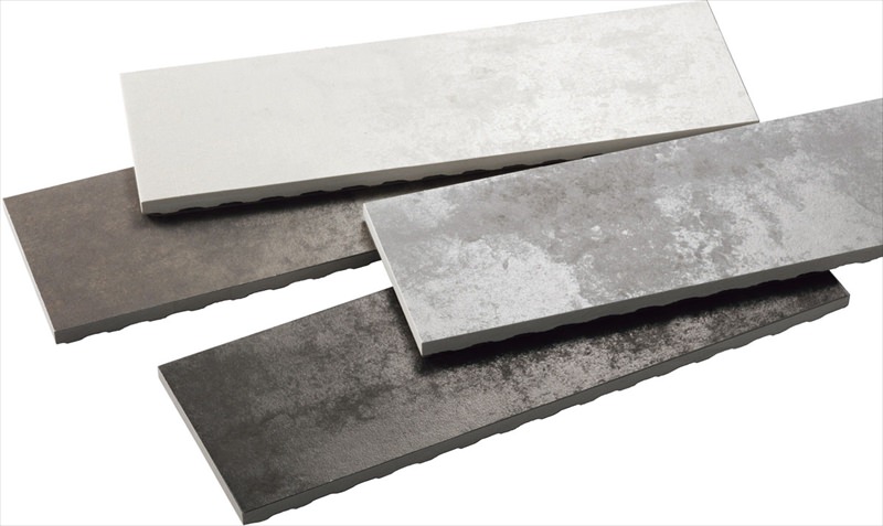 部分的にメタリックな光沢をもつコンクリート調(セメント調)のタイルです。