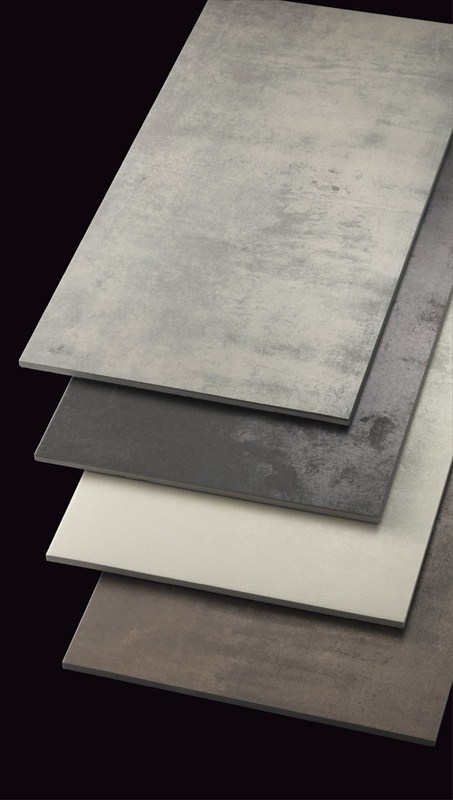 部分的にメタリックな光沢をもつコンクリート調(セメント調)のタイルです。