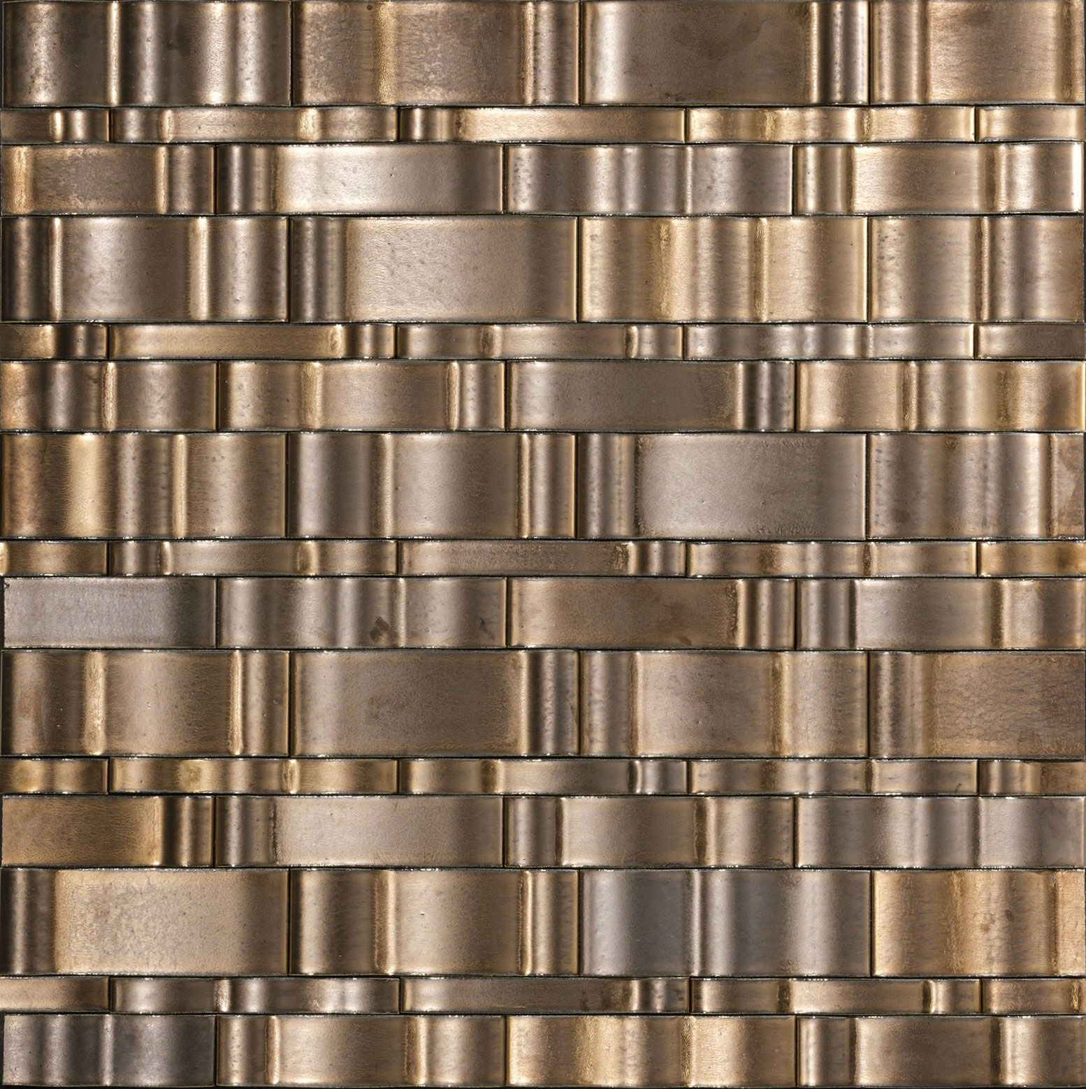 不規則な面状のタイルに金属釉を施しました。ダイナミックな形状と神秘的な色彩で、ラグジュアリーな空間を演出します。 ■注意事項■ <注意点> ●押出成形による切出製法ですので寸法形状にバラつきがあります。 調整しながら施工願います。 ●焼物特有の色幅があります。 ●3種類のウェーブ面状がランダムミックスされています。 ●接着剤貼りを推奨いたします。