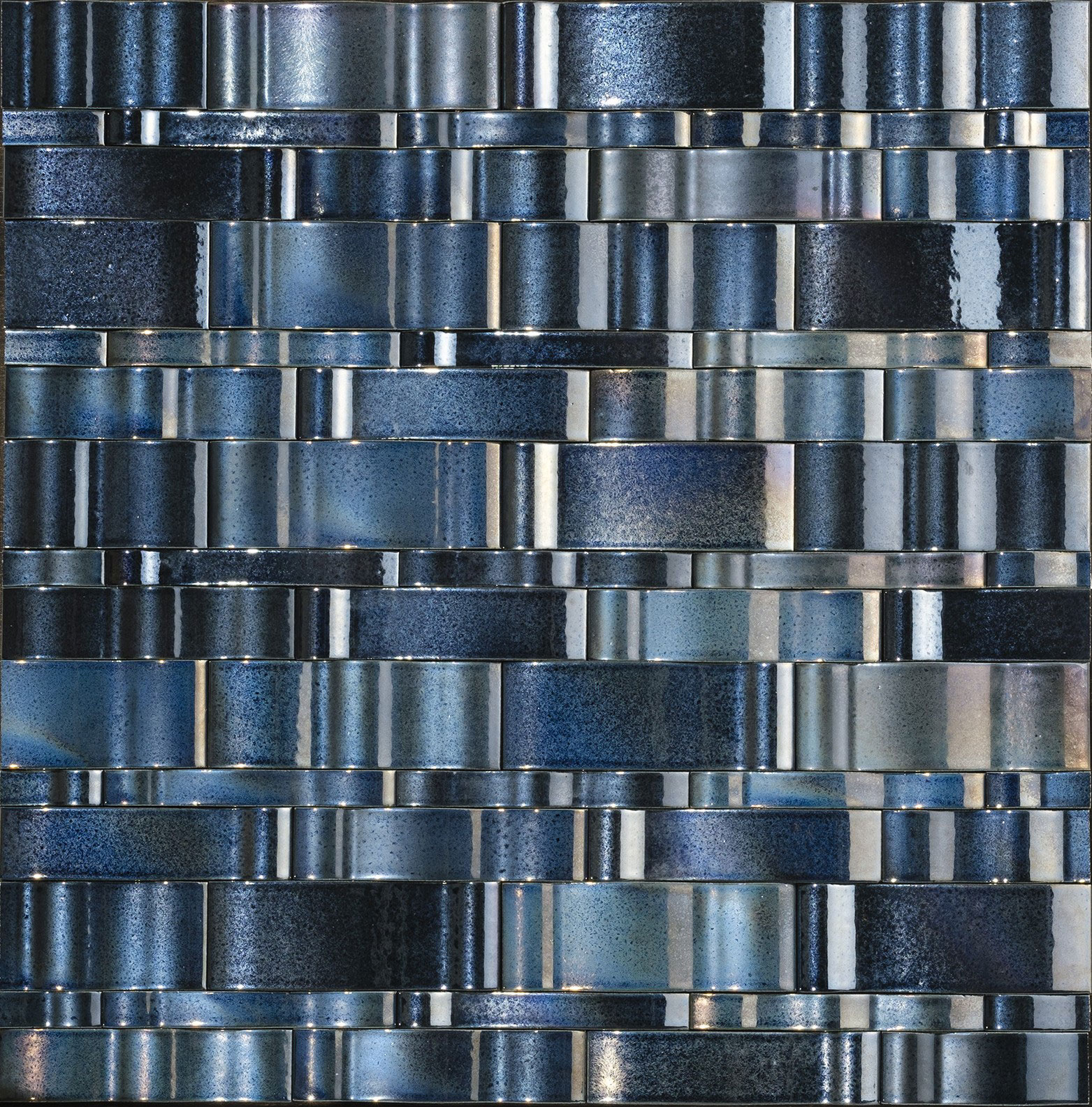 不規則な面状のタイルに金属釉を施しました。ダイナミックな形状と神秘的な色彩で、ラグジュアリーな空間を演出します。 ■注意事項■ <注意点> ●押出成形による切出製法ですので寸法形状にバラつきがあります。 調整しながら施工願います。 ●焼物特有の色幅があります。 ●3種類のウェーブ面状がランダムミックスされています。 ●接着剤貼りを推奨いたします。