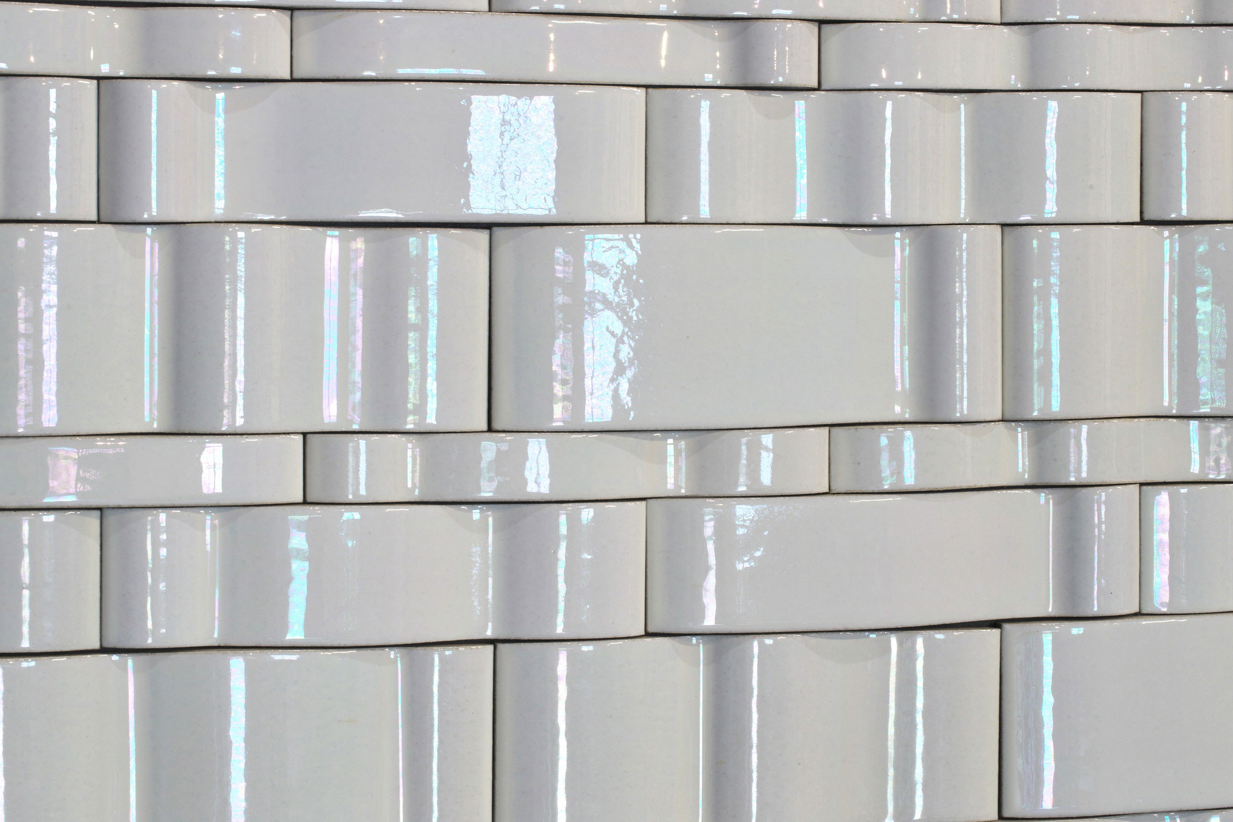 不規則な面状のタイルに金属釉を施しました。ダイナミックな形状と神秘的な色彩で、ラグジュアリーな空間を演出します。 ■注意事項■ <注意点> ●押出成形による切出製法ですので寸法形状にバラつきがあります。 調整しながら施工願います。 ●焼物特有の色幅があります。 ●3種類のウェーブ面状がランダムミックスされています。 ●接着剤貼りを推奨いたします。
