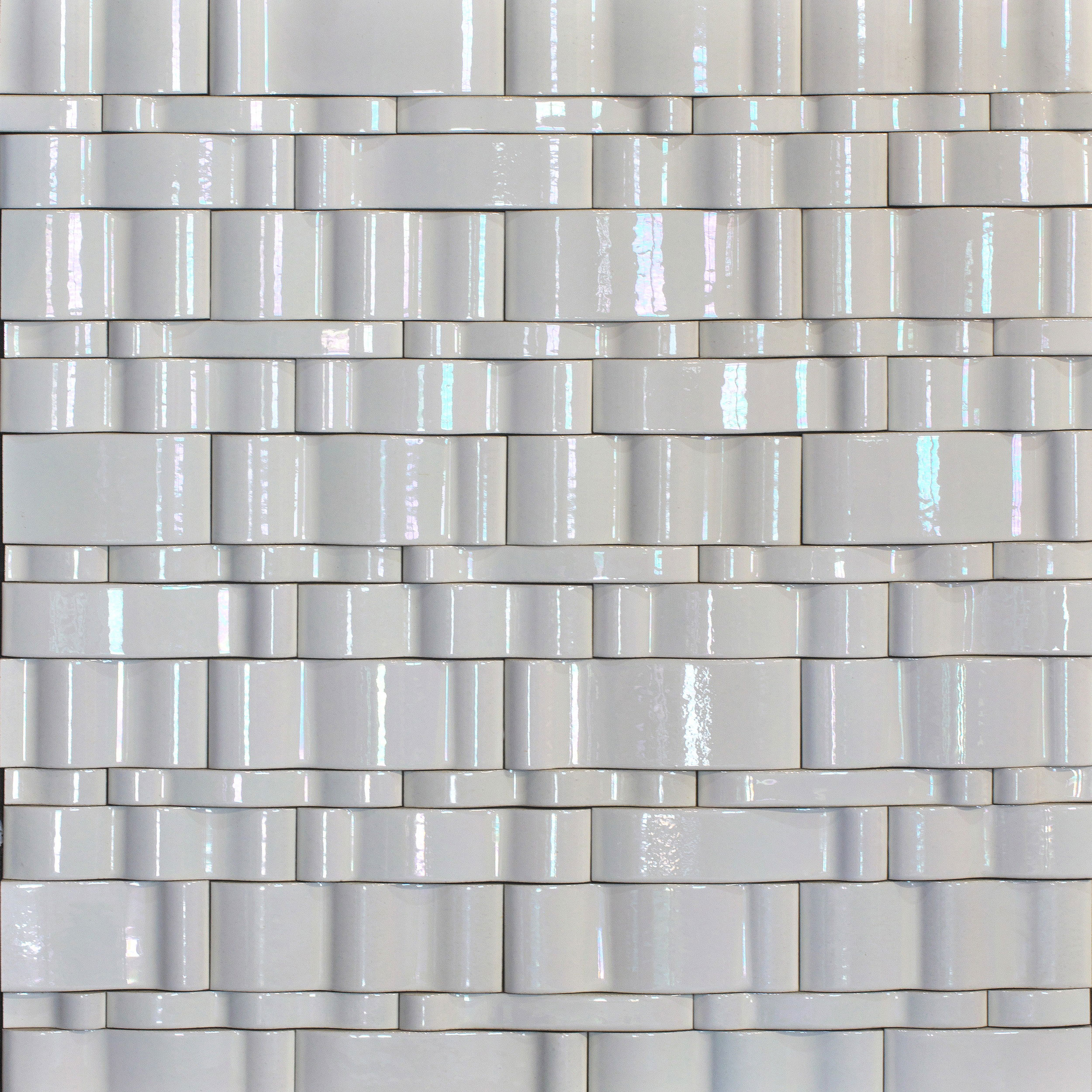 不規則な面状のタイルに金属釉を施しました。ダイナミックな形状と神秘的な色彩で、ラグジュアリーな空間を演出します。 ■注意事項■ <注意点> ●押出成形による切出製法ですので寸法形状にバラつきがあります。 調整しながら施工願います。 ●焼物特有の色幅があります。 ●3種類のウェーブ面状がランダムミックスされています。 ●接着剤貼りを推奨いたします。