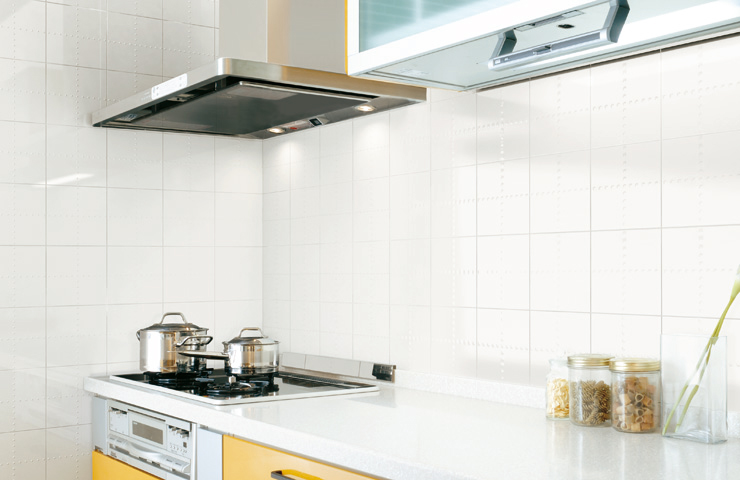 白色で多様なレリーフを揃えたシリーズです。清潔感があり、キッチン空間にお薦めです。