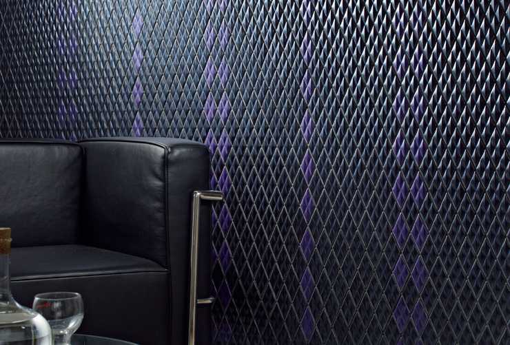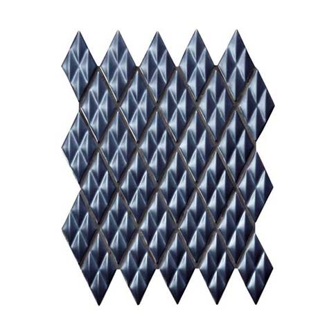 ダイヤ形のタイルにふっくらとしたレリーフを施しました。ラスター釉の輝きが華やかな空間を演出します。