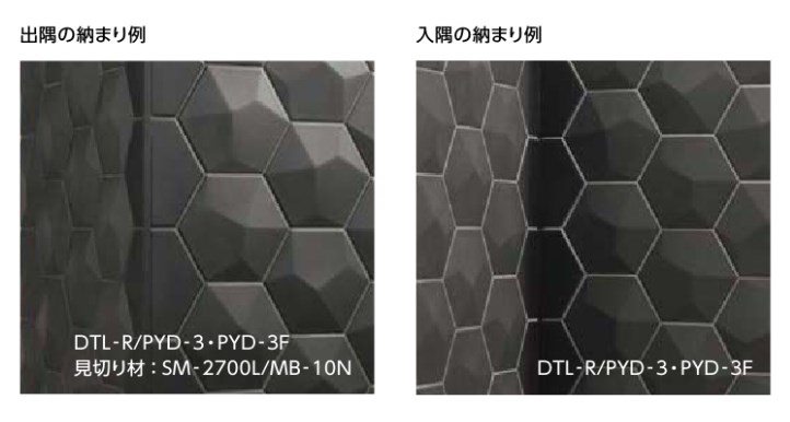 商品の留意点 ●輸入品のため、生産ロット単位、形状間、および1枚ごとなどに色合いが異なる場合があります。 ●175×150六角形(レリーフ)と175×150六角形(フラット)は、光沢と色合いが異なります。 ●色番PYD‐11からPYD‐12はアルカリにより変色や褪色を起こす場合がありますので、アルカリ性の洗剤等の使用を避けてください。 ●役物を用意していません。175×150六角形(レリーフ)は市販の見切り材をご使用ください。175×150六角形(フラット)は装飾見切り材(壁用)をご使用ください。 ●175×150六角形(レリーフ)は切断せず納まるように割り付けてください。切断位置により厚さが異なり、小端が見えます。入隅まわりなど切断が必要な場合は175×150六角形(フラット)を使用し納めてください。 ●陶器質のためインテリアカラー目地は使用できません。目地材の肉やせがでる場合があります。 ●輸入元メーカーの梱包での出荷になります。 施工上のご注意 ●実寸法の表示は、標準寸法です。ロットにより寸法誤差がありますので、タイル割付けの際はご注意ください。 ●3mm以上の目地幅をとって施工してください。 ●色番PYD‐11からPYD‐12はアルカリにより変色や褪色を起こす場合がありますので、洗剤を使用する場合は中性の洗剤をご使用ください。