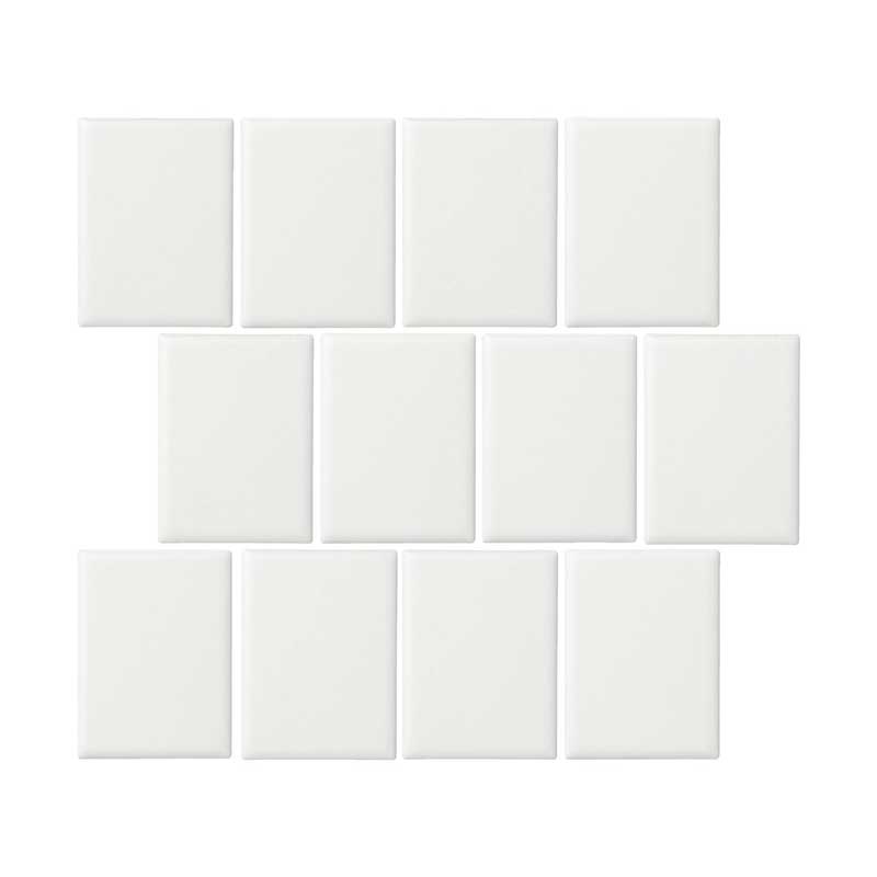 焼物らしさを大切にした落ち着いた色に100×75mmというユニークな形状、角の丸みが特徴。日本製らしい繊細なデザインタイルです。 ■注意事項■ <商品についてのご注意> ●紙の収縮によりシート寸法に誤差が生じる場合がありますのでご注意ください。 ●ご発注後シート加工いたしますので納期をご確認ください。 ●サイズ表示は標準寸法です。ロットにより寸法誤差がありますので、タイル割付けの際はご注意ください。 <施工上のご注意> ●3mm以上の目地幅で施工してください。 ●カーボンや酸化鉄が混入された黒系目地材は目地残りしやすいため、施工前に目地詰めテストをしてご確認ください。 ●役物は用意されていません。出隅には45゜カット加工またはコーナービットをご用命ください。 ●濃色のタイルは虹彩現象が目立つ場合があります。 ●タイル表面の糊を除去した上で目地施工を行い、タイル表面に残った目地はしっかり拭き取ってください。 ●糊の除去・酸洗い時の注意・虹彩現象については、総合カタログに記載しています「タイルのメンテナンス」をご確認ください。