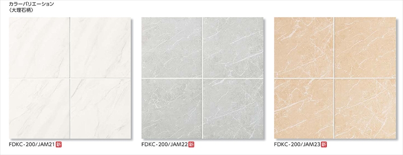 スタンダードな抗菌タイルシリーズ。「イルフォンド」に大理石柄が追加されます。