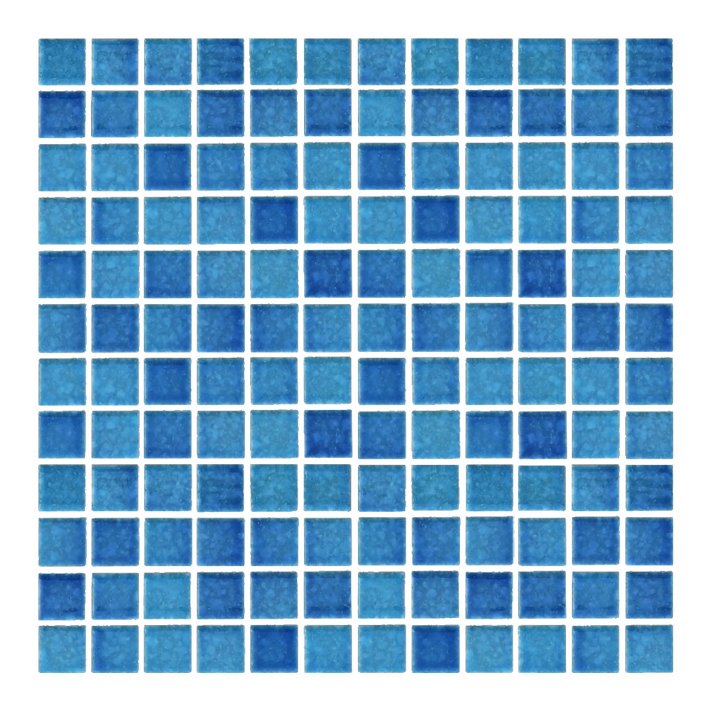 やさしい色合いのプールタイル。豊富なブルーカラーバリエーションで、空を映し出す水面が広がる。 ■注意事項■ ●12×12粒/シート ●発注後のシート加工となります。納期はご確認ください。 ●特注パターン張りのユニット加工も対応いたします。 ●45mm角は受注対応可能ですので、お問い合わせください。
