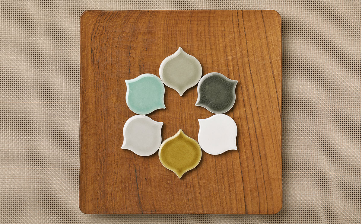 玉ねぎ、水滴、お化けなど見る人によってイメージが変わる抽象的な形状のタイル。