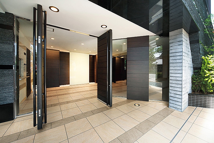 キラキラした質感のクォーツサイト調タイルがグレードの高いマンションエントランス空間を演出ます。 <商品の留意点> ●柄模様には方向性があります。600mm角平、300mm角平はランダムに使用していただくことを想定しています。 ●モップ清掃では引っかかりますのでデッキブラシ等での水洗いをしてください。 ●ファサード等の外壁に使用の場合は、カタログの「ファサード等への施工時の共通注意事項」を必ずご確認ください。 <施工上のご注意> ●柄模様には方向性があるため、施工前に仮並べをして、色合い模様等の確認をしてください。