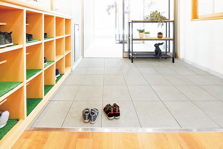 花粉の入り口でもある玄関に持ち込まれる環境アレルゲンの働きを玄関で抑制する効果が期待できます。 <アレルピュア エントランスフロア(玄関内床専用)> 玄関にタイルならではの気品と質感を与える床タイル。 その高い意匠性をそのままに、耐久性を与えたLIXIL独自のコーティング技術で、抗アレルゲン剤を固着させました。 住まいの中に持ち込まれる環境アレルゲンの働きを玄関で抑制する効果が期待できます。 商品の留意点 ●アレルピュアエントランスフロアの共通注意事項(カタログ)をご覧ください。 ●同一面状の外装床タイル(ライトスレート・セラバサルト)の商品の留意点をご覧ください。 ●上記の同一面状の外装床タイルとは、色合い・光沢が異なります。現物サンプルにてご確認ください。 ●すべりにくい面状と防汚・清掃性をあわせ持つマイクロガードフロア仕様です。 ●アレルピュアエントランスフロアは玄関内床(玄関ドア内側床)専用商品です。屋外や玄関ドアの外、居室の床や壁には使用できません。 施工上のご注意 ●同一面状の外装床タイル(ライトスレート・セラバサルト)の商品の施工上のご注意をご覧ください。