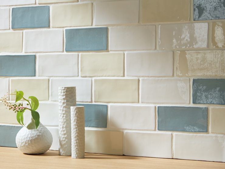 ●手作り感を演出するため、タイルの輪郭および表面はラフに成形しています。そのため目地幅・目地高さは均一にはなりません。