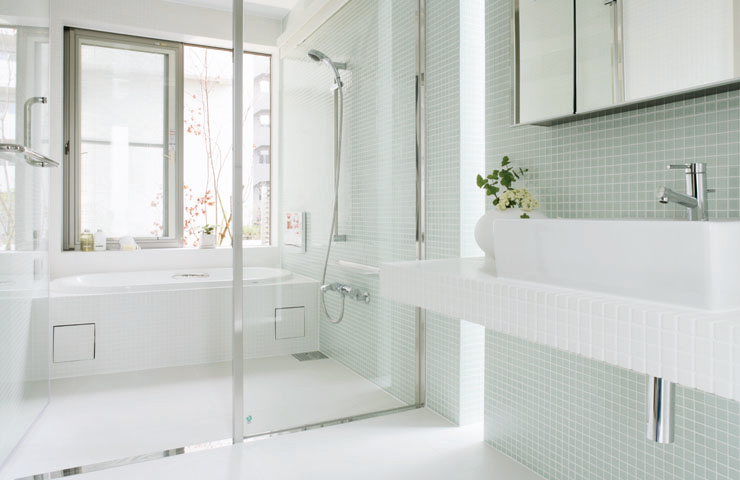 ●浴室では石鹸かす、皮脂汚れ等が付着するとすべりやすくなり、けがをする可能性があります。適切な清掃を必要としますので、住宅向けメンテナンスマニュ アル「水まわりピカピカブック」(カ-EU02-10)またはホームページ「アフターサポート」欄をご参照の上、清掃してください。