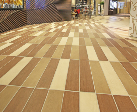 伝統的なパーケットフローリングを思わせるデザインタイル。
